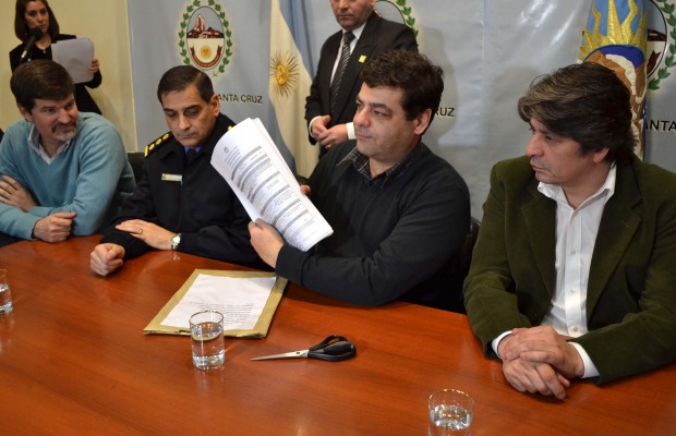 Del acto también fueron parte: el jefe de la Policía de la Provincia, Comisario General, Salomón Aleuy; el Ministro de Salud, Dr. Julio Vizconti; el Ministro de la Producción, Harold Bark; la Presidente del Consejo Provincial de Educación, profesora Silvia Sánchez; el intendente de Puerto Santa Cruz, Néstor González, y el titular de la Agencia de Seguridad, Ariel López, entre otros.