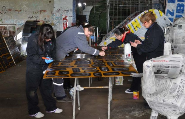 Uno de los lugares donde grupos de estudiantes se encuentran trabajando en la confección de carrozas es el galpón del área Ornamentaciones y Festejos desde temprana hora los estudiantes y haciéndose un tiempo en el cursado de sus estudios están poniéndole los detalles a sus carrozas.