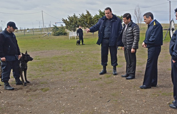 El Ministro de Gobierno Ingeniero Gustavo Martínez junto al Jefe de Policía Comisario General Salomón Aleuy y el Sub Jefe de Policía Comisario General Osvaldo Valenzuela visitaron La División Canes de la Policía de Santa Cruz. El objetivo de dicha visita fue interiorizarse sobre el funcionamiento del banco de olor para el trabajo con sustancias específicas.