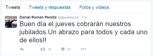 El gobernador de la provincia de Santa Cruz anunció a través de twitter que este jueves estarán disponibles los haberes del sector pasivo provincial.