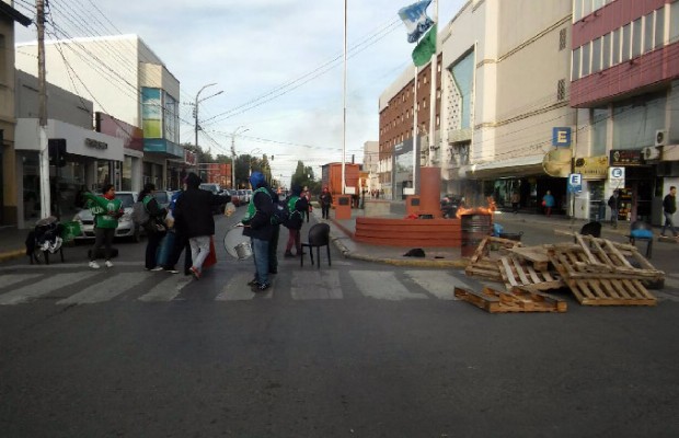 Integrantes de gremio estatal, seccional Pico Truncado, decidió cortar esta mañana la intersección principal de Río Gallegos. Van a mantenerlo hoy y mañana a la espera de la reunión paritaria. Alba Curaqueo, secretaria general de la seccional de la localidad norteña, dijo que “hay 70 trabajadores que están reclamando por estar despedidos, y al no tener convenio ni contrato firmado, los chicos están en la nada y están en defensa de sus puestos laborales”.