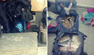 Los uniformados controlaron un colectivo de larga distancia, con apoyo del can detector de narcóticos “Alexis”, encontrando a un ciudadano de nacionalidad paraguaya, mayor de edad, que transportaba 7,609 kilógramos de cannabis sativa en el equipaje.