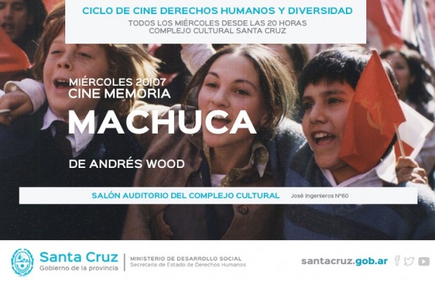 Bajo la premisa que el presente y el futuro de una sociedad se forjan en base a su identidad, y no puede pensarse una identidad sin MEMORIA, la Secretaría de Estado de Derechos Humanos, invita a la comunidad a la proyección del film “Machuca”, de Andrés Wood. La misma se concretará el miércoles 20 de julio a las 20:00 en el Salón Auditorio Luis Villarreal del Complejo Cultural Santa Cruz, sito en José Ingenieros 60.