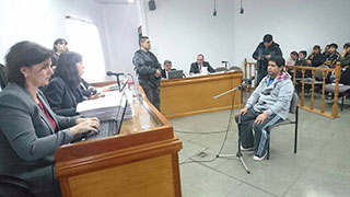 Luego del cuarto intermedio, se sentó frente a los jueces uno de los hijos de la víctima (Matías Araujo), ante lo cual Angel solicitó salir de la sala y escuchar la declaración desde el salón de audio.