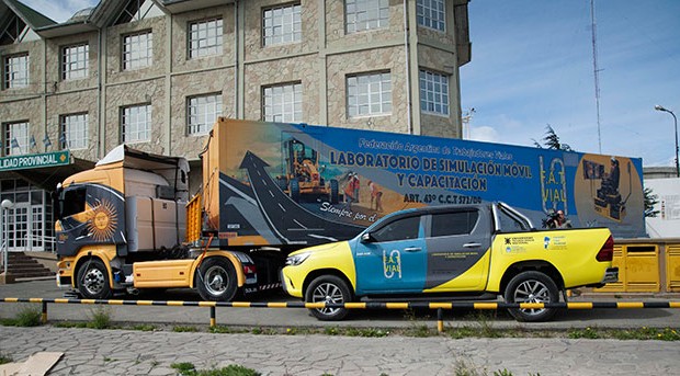 El Gobierno de Santa Cruz, informa que a través de la Administración General de Vialidad Provincial en conjunto con la Federación Argentina de Trabajadores Viales (FAT VIAL), se presentó el Laboratorio de Simulación Móvil y Capacitación.