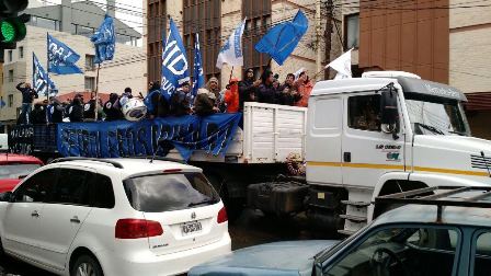 “Tenemos un paro hace más de cuatro días, amenaza de despido. No nos vamos a dejar presionar por el gobierno nacional. Están pretendiendo que los trabajadores entren a un acuerdo de productividad, que significa reducción salarial. Sabemos que en Santa Cruz la economía es más elevada que en el resto del país”, dijo el secretario general Claudio Vidal en dialogo con los medios.