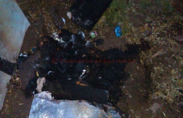 Dentro del tambor de chapa de 200 litros se encontraban aun ardiendo restos humanos, presuntamente de un hombre, cuyo cuerpo estaba casi calcinado, salvo la cabeza y las extremidades superiores.