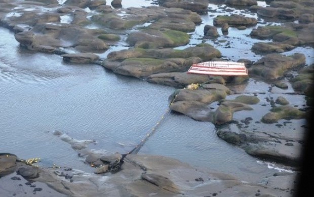 Así fue hallada la embarcación que llevaba a Julio Flores el pescador desaparecido en Punta Loyola. El helicóptero del ejército lo encontró ayer por la tarde en la zona de cabo Buen Tiempo.