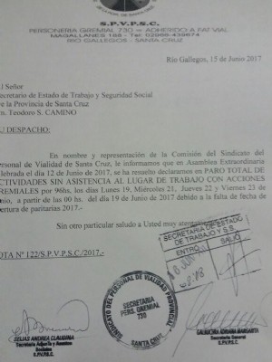 Con una nota enviada a la Secretaría de Trabajo, el Sindicato de Personal de Vialidad de Santa Cruz confirmó un paro de 96 horas esta semana que, sumando el feriado, completará la semana. Siguen sin respuesta a sus pedidos.