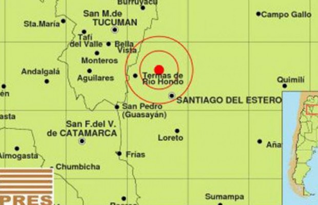 Según el Inpres, el sismo de esta noche se registró a las 21.53, con epicentro 29 km al Sur de Las Termas de Río Hondo y 54 km al Oeste de Santiago del Estero.