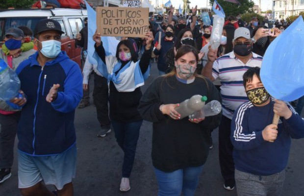 Los vecinos y vecinas de todas las edades y condición social descreen los anuncios de la empresa de Servicios Públicos que argumentó haber lograron acuerdos tanto con la SCPL de Comodoro Rivadavia para asegurar un determinado volumen diario por el acueducto que proviene del Lago Musters, como con YPF y empresas de servicios petroleros para traer agua en camiones desde Jaramillo.