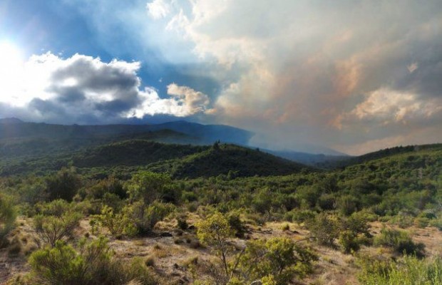 De momento se propaga desde la ladera este del C° Piltriquitrón con dirección a El Maitén, sobre la estancia Mallín Cumé, sin poner en riesgo infraestructura. Treinta personas, entre brigadistas y personal a cargo de logística, fueron desplegadas en terreno.