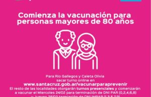Comienza la vacunación para mayores de 80 años en Santa Cruz. La aplicación de dosis para este grupo etario inicia el miércoles 24. Es importante...