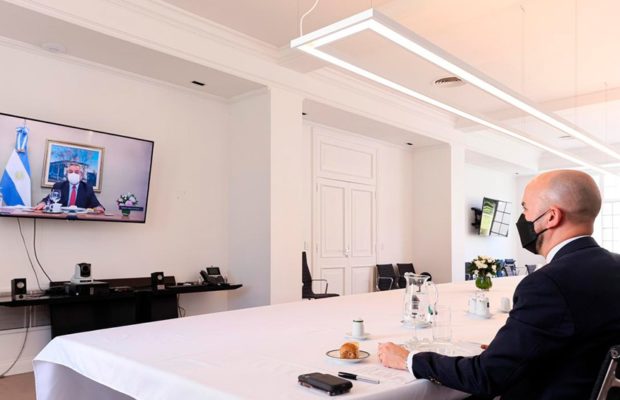 En el almuerzo virtual de este mediodía, que se extendió durante unas dos horas y en el que Fernández participó desde la Quinta Presidencial de Olivos debido a su afección por coronavirus, el mandatario y los enviados de los Estados Unidos dialogaron sobre los posibles modos de cooperación para la adquisición de vacunas contra la Covid-19.