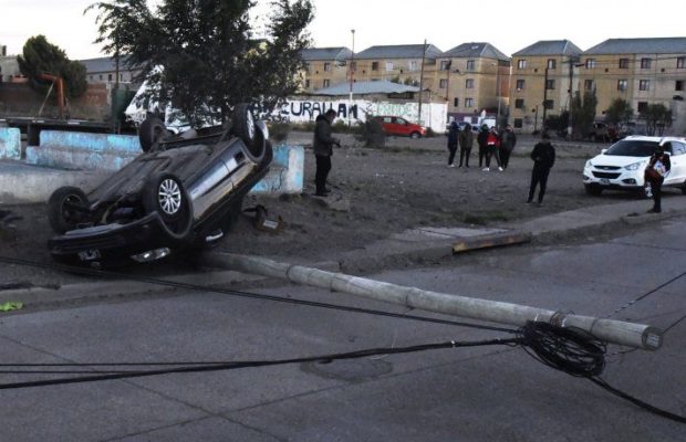 El joven, de 20 años, afortunadamente solo sufrió algunos raspones en la cabeza a pesar de que el rodado volcó quedando en posición invertida y además produjo la caída del poste de madera que bloqueó toda la cinta asfáltica.