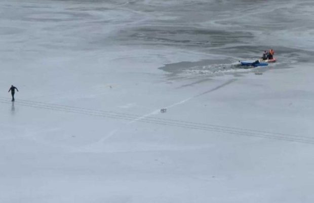 Alrededor de las 16.30h. vecinos alertaron sobre la presencia de dos niños menores de 10 años que utilizaban dos trineos sobre las aguas congeladas del Dique San José.