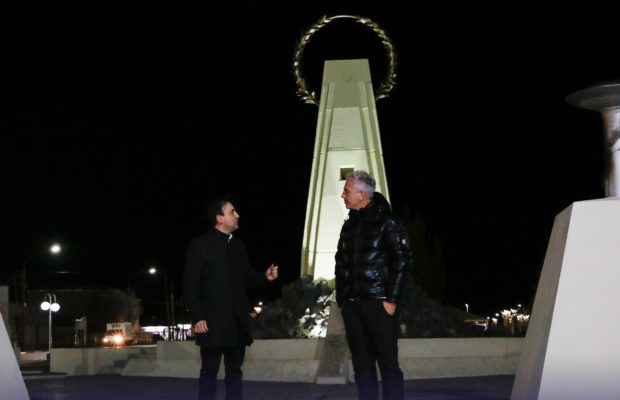 Primero pasó por las letras identificatorías de la ciudad, para posteriormente seguir hacia el monumento al escudo de la ciudad de Río Gallegos ubicado en la rotonda Cardenal Samoré y de ahí al monumento a los Caídos en Malvinas, donde el conductor junto al Intendente Pablo Grasso compartieron una serie de fotos.