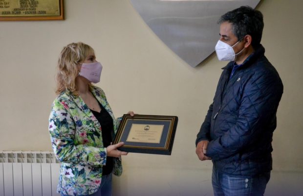 En el marco del 76° aniversario del tradicional Club Boca Rio Gallegos, esta mañana la secretaria de Producción, Comercio e Industria Moira Lanesan Sancho, en representación de la Municipalidad de Río Gallegos, hizo entrega de una placa al vicepresidente de la entidad deportiva Ricardo Suarez.