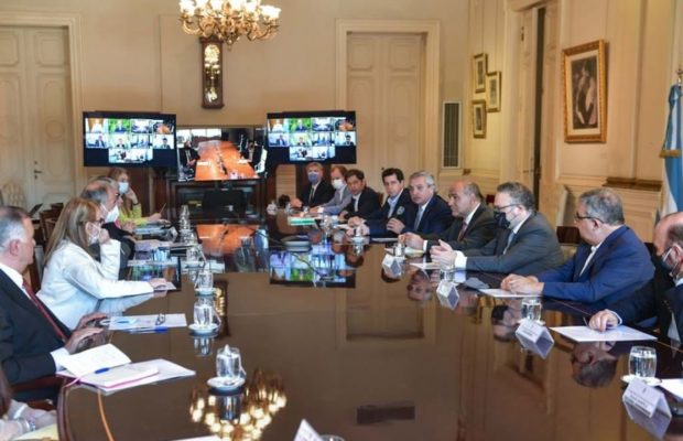Durante el encuentro que tuvo lugar en el Salón Eva Perón de Casa Rosada, el presidente Alberto Fernández fue acompañado por el jefe de Gabinete, Juan Manzur; y el ministro del Interior, Eduardo Wado de Pedro. Asimismo, la reunión contó con la participación presencial y virtual de mandatarios y mandatarias de todo el país.