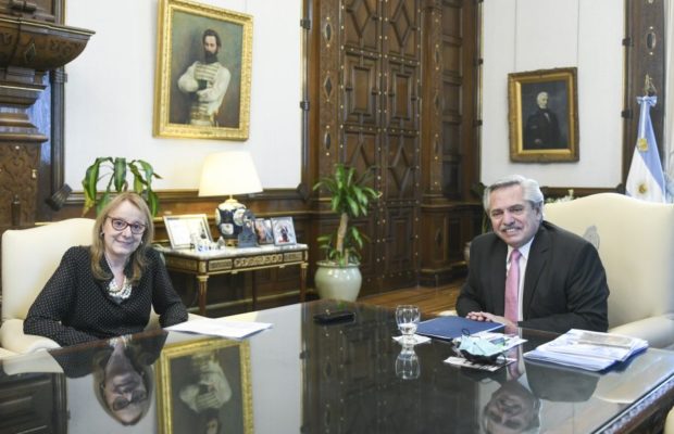 El presidente Alberto Fernández se reunió esta tarde en su despacho de la Casa Rosada con la gobernadora de Santa Cruz, Alicia Kirchner.