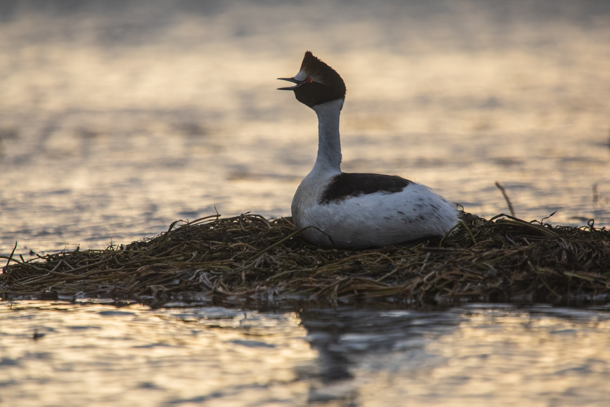 Tras tres años sin reproducción exitosa, el Macá Tobiano está usando las plataformas flotantes instaladas por el equipo del Programa Patagonia-Proyecto Macá Tobiano para elegir pareja y construir sus nidos.