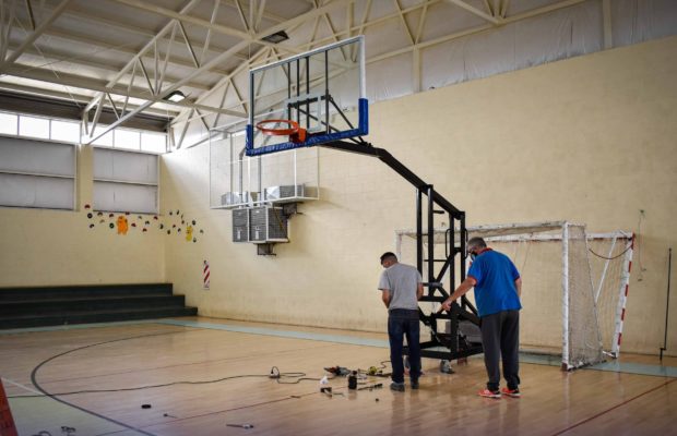 En las instalaciones del Gimnasio Municipal Jorge “Indio” Nicolai, ubicado en el barrio San Benito, continúa la instalación de nuevo equipamiento deportivo consistente en dos jirafas de básquet con sus respectivos aros. Esta obra se enmarca en el plan de adecuación y equipamiento que viene desarrollando la Municipalidad de Río Gallegos a través de la Secretaria de Deportes, con el fin de mejorar los servicios que se ofrecen al vecino en los distintos centros deportivos municipales.