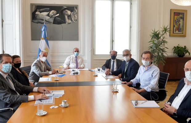 En ese marco, el jefe de Gabinete, Juan Manzur, recibió al ministro de Agricultura, Ganadería y Pesca, Julián Domínguez; al secretario de Asuntos Estratégicos, Gustavo Béliz; y a los presidentes del Banco Central, Miguel Ángel Pesce; y del Banco Nación, Eduardo Hecker, para dar impulso a esta línea de crédito que permita el incremento de las exportaciones de agroalimentos.