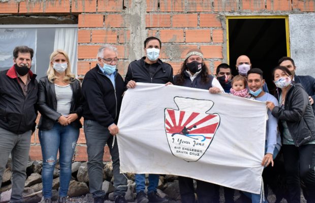 El Intendente de Río Gallegos, Pablo Grasso, junto al Secretario de Deportes Héctor Alderete y la Directora General de Obras Natalia Quiroz, efectuaron esta tarde una visita a las instalaciones de la Asociación de Kayak I Yenu Jono.
