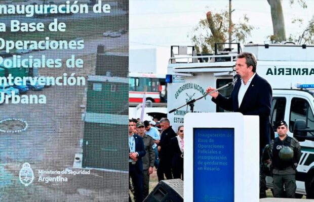 “Vamos a reforzar la presencia de las fuerzas federales en Rosario, y le digo al intendente que si soy Presidente voy a tomar como algo personal el devolverle la paz a Rosario“, dijo Massa en su discurso. “Cuenten con mi compromiso para tener las inversiones que necesiten en logística y tecnología. Sé lo que significa para los efectivos de las fuerzas federales dejar sus hogares para trabajar contra el delito en otros destinos. Por eso les vamos a dar todas las herramientas que necesiten, agregó.