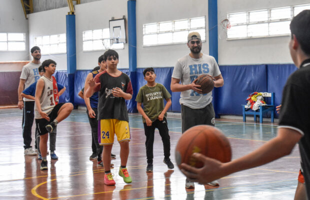 Como parte de sus actividades de vinculación social, los jugadores Gonzalo Romero y Matías Aristu del plantel del Torneo Nacional de Ascenso del Hispano Americano visitaron la escuela municipal de básquet que dirige el profesor Fernando Pérez en el Gimnasio 17 de Octubre.
