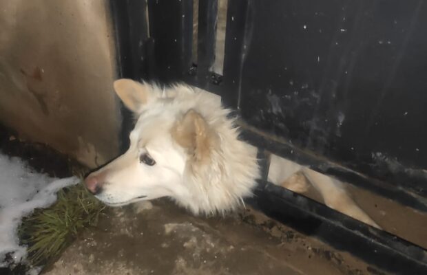 Finalizando la jornada de anoche, la División Cuartel 8va. de El Calafate respondió a una emergencia para rescatar a un perro atrapado en una abertura de un portón de metal.