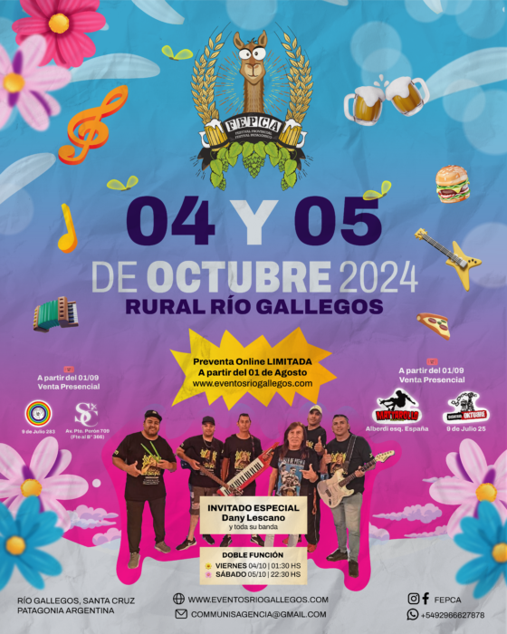www.eventosriogallegos.com | www.fepca.com.ar | Producción General: Mori César Group Facebook: @FEPCA | Mail: communisagencia@gmail.com | WhatsApp +549 2966 627878