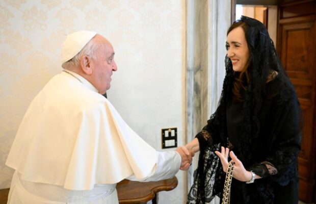 “Audiencia con el Santo Padre, hoy en la ciudad del Vaticano. ¡Gracias Santo Padre por sus palabras, consejos y por tener siempre presente a nuestra amada Argentina!“, escribió la titular del Senado en su cuenta de X. Si bien se conocían de los tiempos de Jorge Bergoglio como arzobispo de Buenos Aires y habían tenido una reunión en 2014, es la primera vez que Villarruel concurre a la Santa Sede en su rol de vicepresidenta. Consultada por su vestimenta -completamente de negro-, la funcionaria explicó: “Las mujeres debemos vestir de negro. Hoy la mantilla es optativa en el protocolo, pero la que usé era de mi abuela y me hacía ilusión poder usarla”.