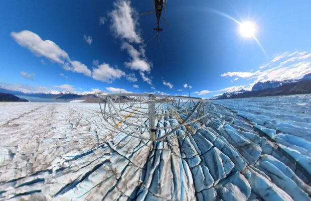 Para ello se utilizó un radar especialmente diseñado para medir este tipo de “hielo caliente”, como se denomina a las masas que tienen bastante presencia de agua líquida en su interior. La estructura de esta antena colgante es de 4 metros de ancho, 6 m de largo, 1 m de alto y un peso de 300 kg.