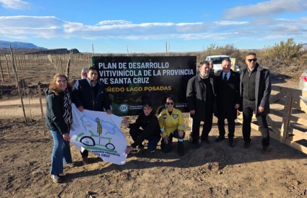 Durante la recorrida, las autoridades visitaron las chacras 55 y 56, terrenos pertenecientes al Consejo Agrario Provincial, donde se lleva adelante la implantación de un viñedo que abarca 12 hectáreas. La iniciativa forma parte del Plan de Desarrollo Vitivinícola de Santa Cruz, que se enmarca en una estrategia provincial de diversificación productiva y valorización del trabajo rural.