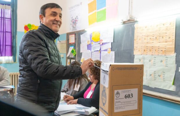 El intendente de Río Gallegos, Pablo Grasso, emitió su voto este domingo en la Escuela Primaria N° 1, en el marco de la jornada electoral que se desarrolla en todo el país con la implementación de la boleta única de papel.