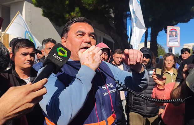 El secretario general del SOEM Río Gallegos, Pedro Mansilla, se dirigió a los trabajadores que se manifestaban frente a la Legislatura provincial luego de que la Cámara de Diputados resolviera por unanimidad devolver al Poder Ejecutivo el proyecto vinculado a la emergencia económica para su revisión.